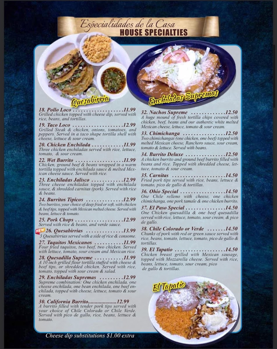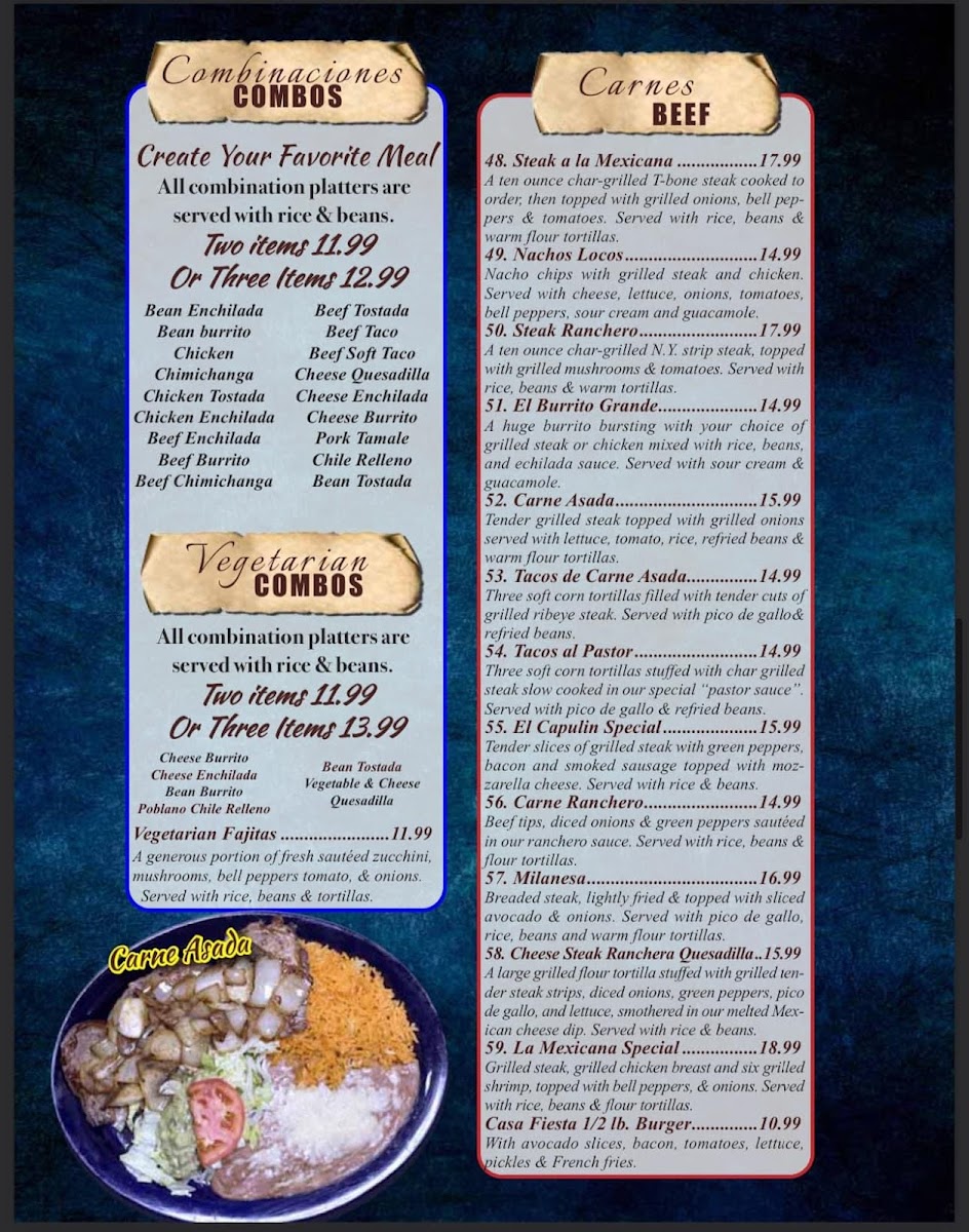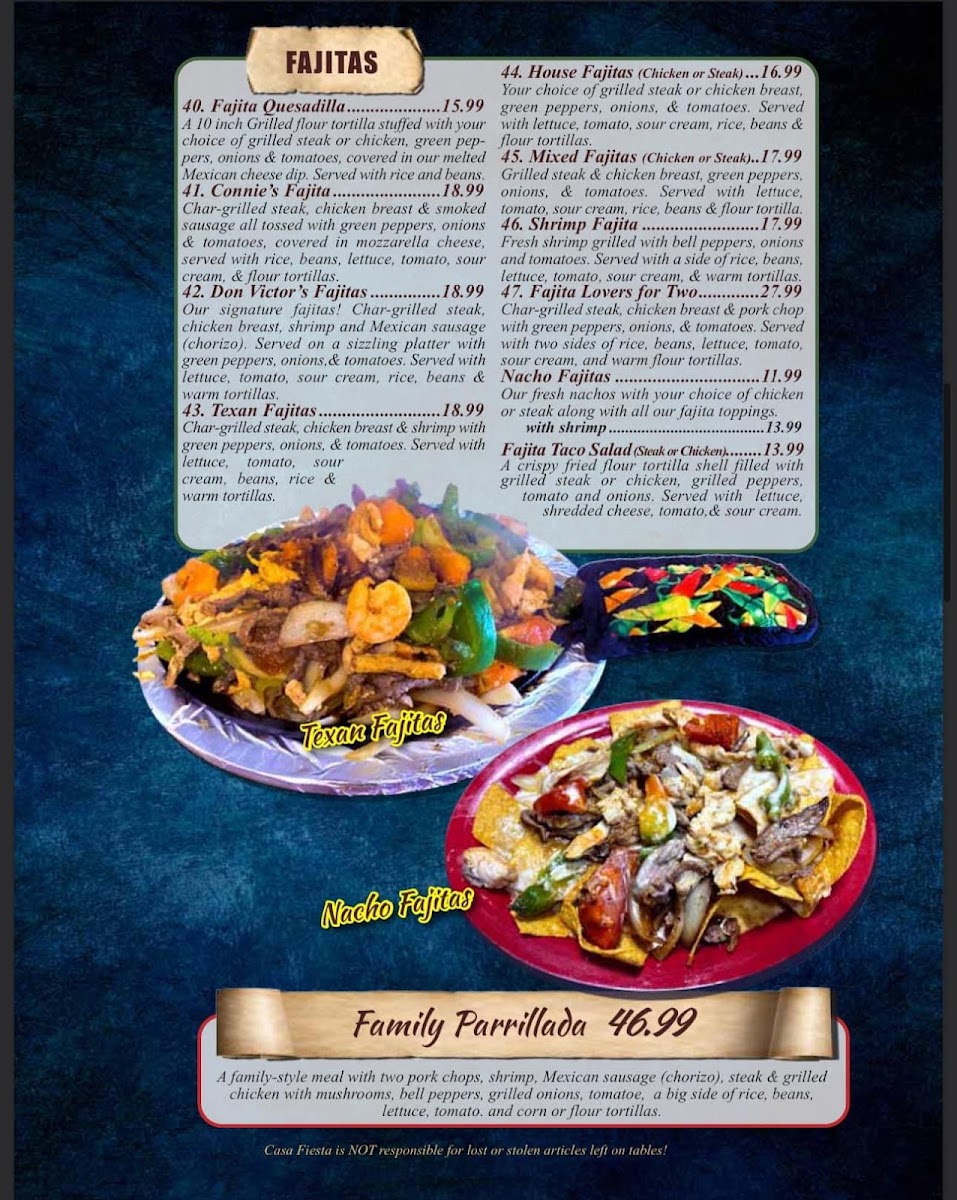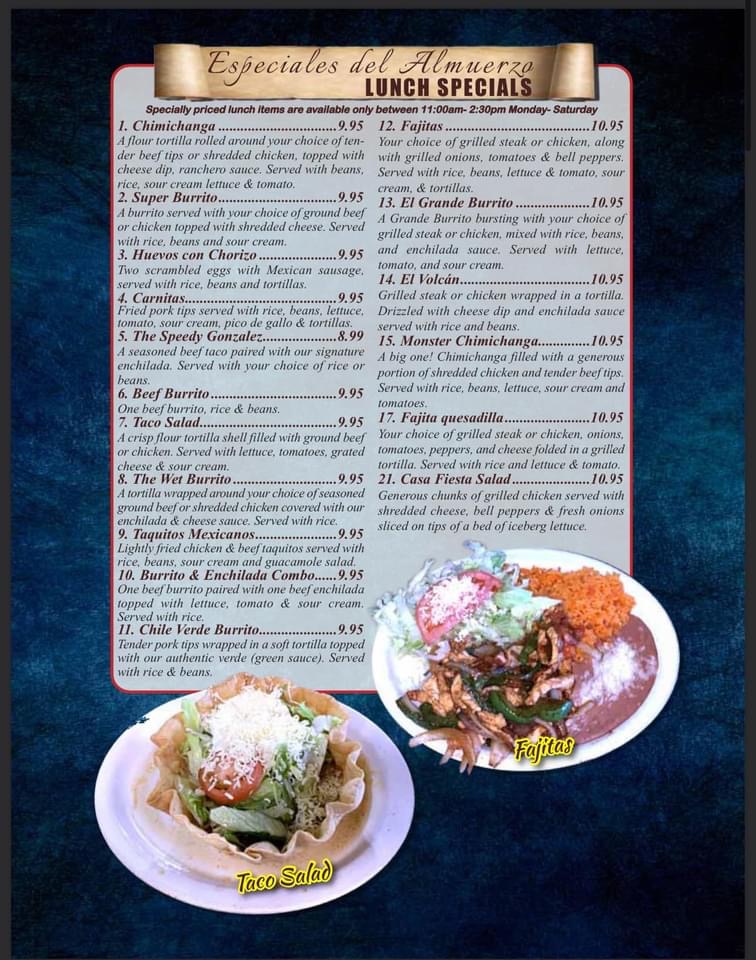Casa Fiesta Menu