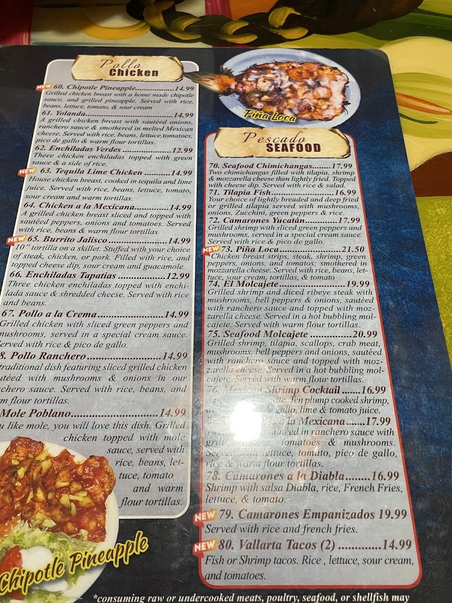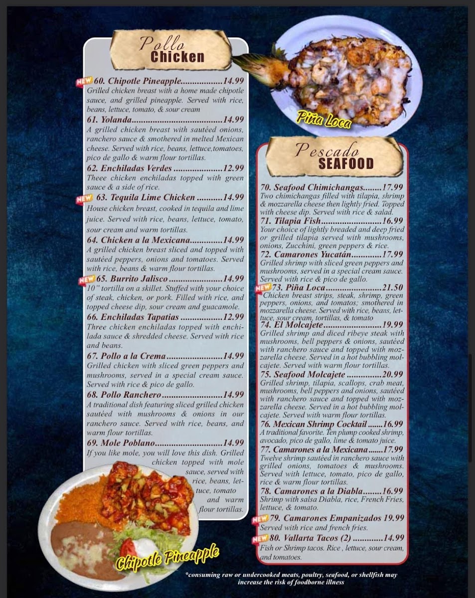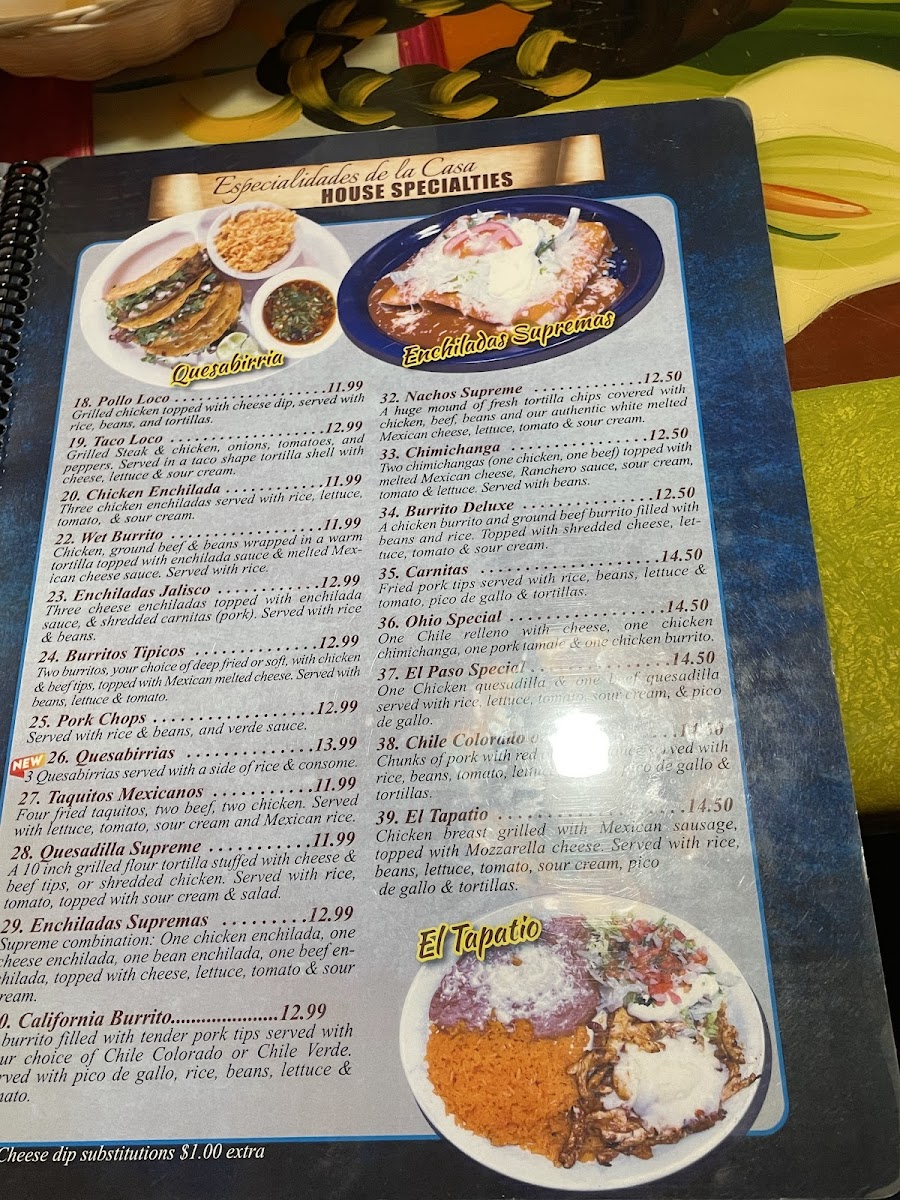 Casa Fiesta Menu